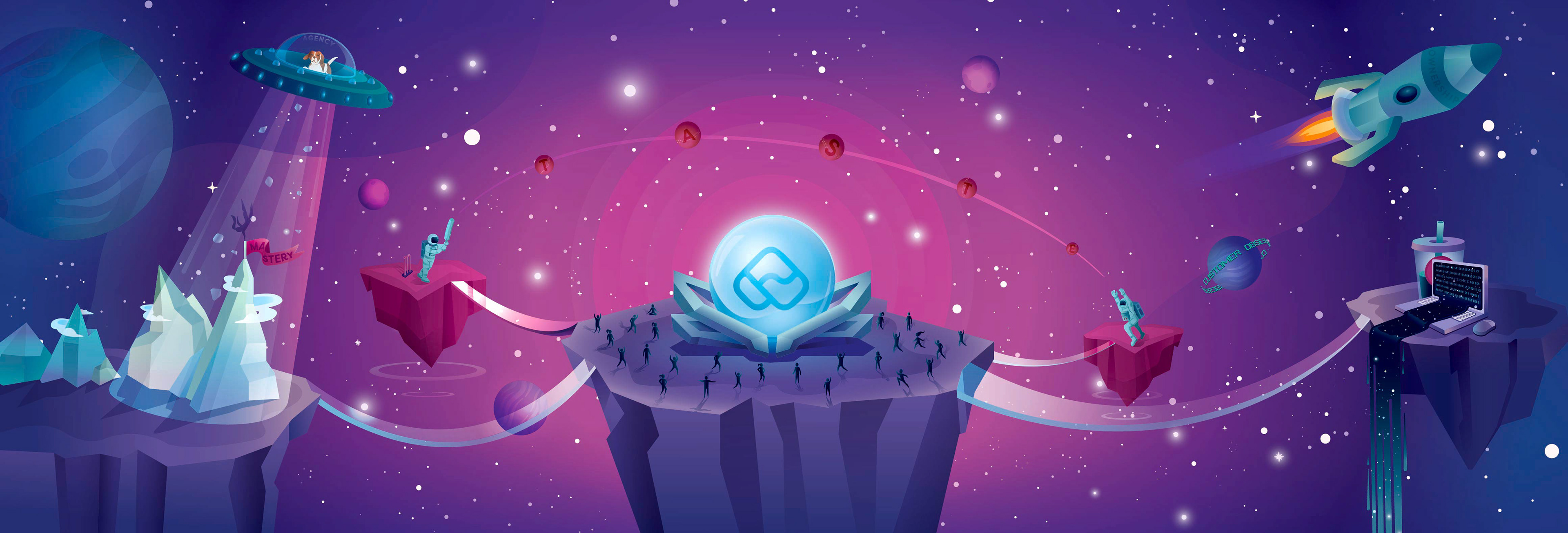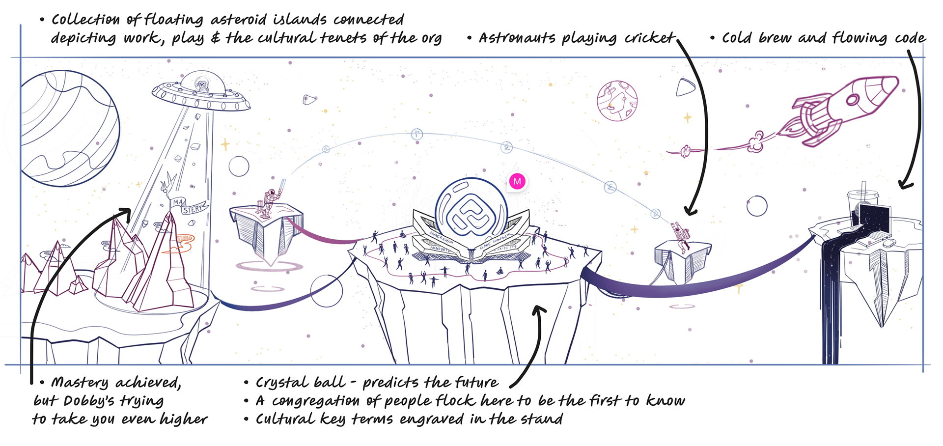 I also wanted to bring atmospheric, awe-inspiring & immersive worlds to fully encapsulate the theme of 'Space and beyond' whilst remaining light-hearted all the same. Through brand research and conversations had with the team (the CEO, CPO and senior designers) - I gathered easter eggs on the company culture around a beloved office pet (Dobby) depicted on their 404 page, an avid caffiene-lover community, the product's own AI chatbot (Atom) - blending the multitudes into something larger than life.